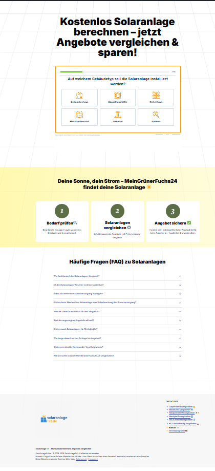 Solaranlage1x1.de 🌞 Affiliate Website für Photovoltaik Leads
